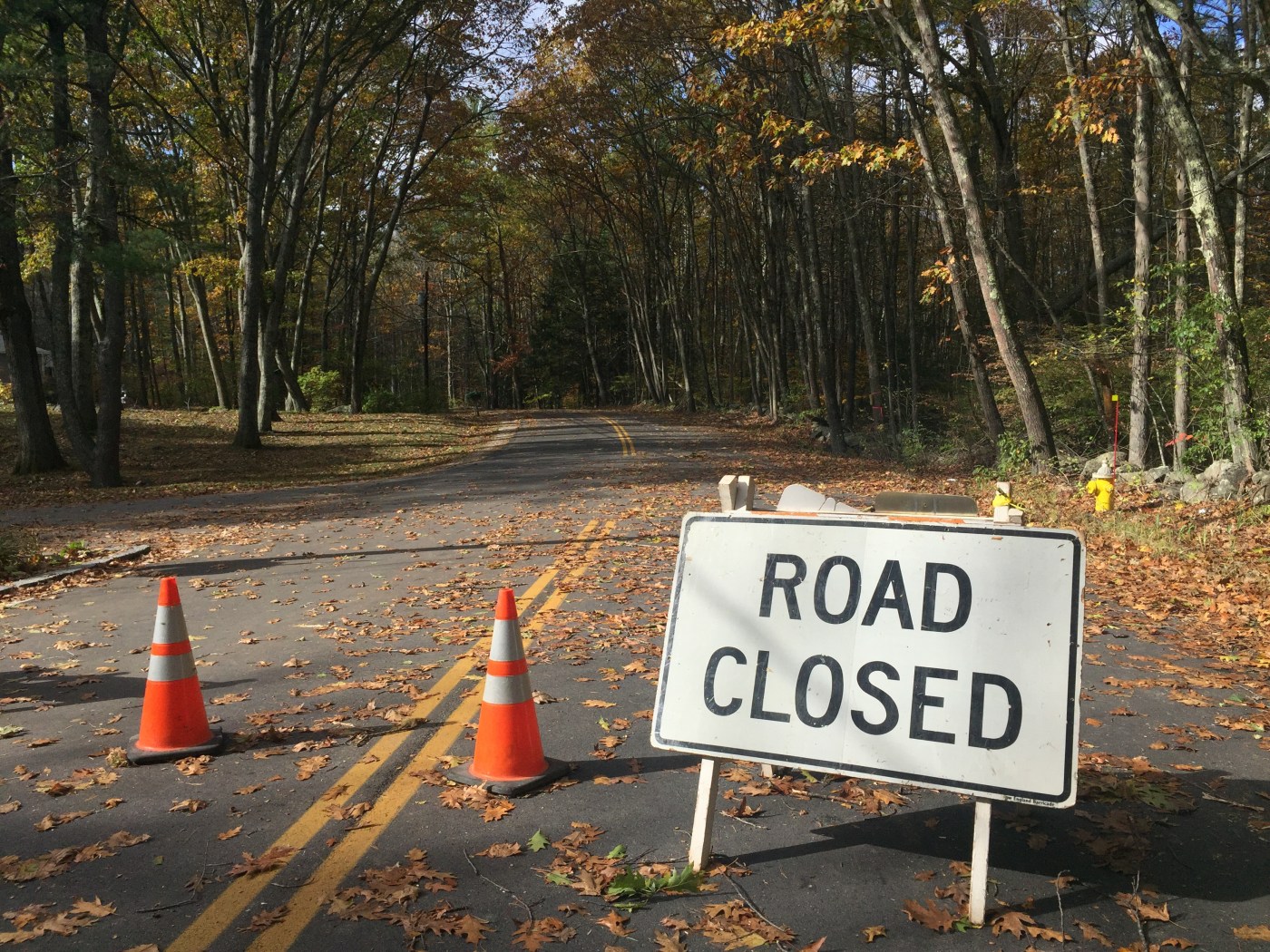Commuters were forced to find alternate routes as felled trees and downed power lines created numerous road blocks. In Durham, parts of Mill Road, Dame Road, Woodridge Road, Willey Creek Road, Packers Falls Road, Griffith Drive, and Littlehale Road in Durham were closed off. In Madbury, sections of Nute Road and Mill Hill Road were blocked. A section of Route 108 between Bagdad Road and Canney Road was still closed as of Tuesday morning.