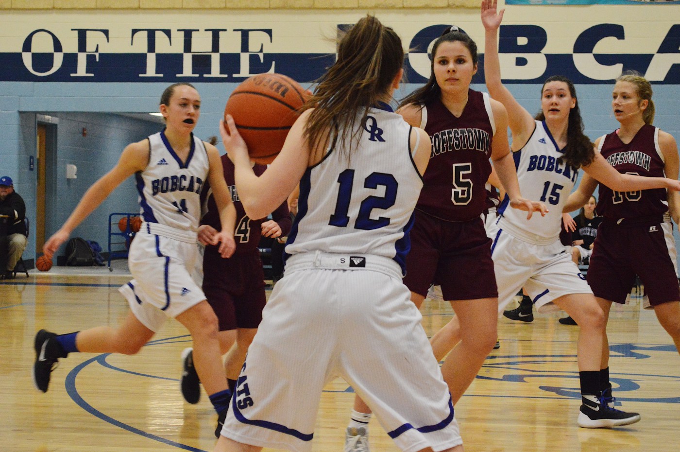“Losing is difficult, especially when the game is very close and it could go either way. Even though we lost, I think the Goffstown game showed us that we are capable of competing and potentially winning even with our small numbers and inexperience,” explained Captain Madeline Alphonse (‘19). Oyster River fell short to Goffstown by just 11 points with a loss in the final minutes of the fourth period on January 10th.Oyster River fought hard for a lead the entire game. Goffstown had multiple breakaways, only to be countered by OR points. Right after the half ended, the Bobcats were down 18 to 17, resulting in an even closer game. Yet late in the third, Goffstown broke the tight score, and were up 31 to 21. The Bobcats continued to work hard, keeping their starters on for the majority of the time. OR had many consecutive passes, but still were down 27-38, late in the fourth period. Attempting to make a comeback as the clock ticked down, they were able to score six more points, two of which, from free throws by Alphonse. Unfortunately the Bobcats took their seventh loss of the season and ended the game 33 to 44.“It was disappointing [to lose] at first but we just had to realize that going into the game we didn’t think we would do as good as we did. We have improved so much from the start of the season that if we were able to play them again we would have a great chance of winning,” said Carissa Miller (‘21) (pictured above), one of the few freshmen on the varsity team. The team has struggled on a losing streak this year and the past year. They have had issues with with having enough numbers for varsity and junior varsity teams, with many varsity players also swinging to play in junior varsity games.The Bobcats appeared to have a great team dynamic, having multiple accurate passes, and waiting for the perfect opportunity to shoot. The players on the bench, were constantly cheering for their teammates, many of them on the edge of their seats for this nailbiter. Kate Lenhard (‘19) pictured above, completed many passes, and contributed to the extremely close game.“I think our team chemistry has been a tricky thing for us this year. We haven’t been playing together for very long and that’s proven to be a challenge on the court. This being said I do believe that we are becoming closer and working together much better in recent games, that shows a lot of hope and potential for the future,” said Alphonse. Luckily for the Bobcats, their team seemed extremely solid while fighting to defend Goffstown. The four juniors of the Bobcats were prominent, and held the team together in terms of dynamics. Karlie Stevens (pictured above), Kate Lenhard, Madeline Alphonse, and Abby Craig worked well together.Natalie Durant (‘18) (pictured above) serves as captain alongside Alphonse. The captains play a huge role in leading the team. “The captains I think really help the team keeping our head up and not getting down even when we are losing which really helps our team. That was a huge part of that game. I don’t think we would have done as good as we did if our captains didn’t keep us from getting down,” explained Miller.“Goffstown was really swift and had some good shooters and well as people who could drive to the basket well. I think playing man to man could have countered that and also our shots just didn’t fall so trying to take more open shots,” said Mia Hricz (‘21). Goffstown is currently is 13th place according to the Division II standings, with a record of five wins and six losses.“My hope are for us to win against Kingswood and Timberlane from all of the progress we have made,” said Hricz. Sadly, OR did not win against Kingswood, but look forward to playing Windham on Tuesday. The Bobcats are looking to break their streak and work towards a common goal. Hopefully, during the next home game more fans will be there to support the Bobcats in changing their record (fans Alex Crosbie and Max Lewis pictured above). Yet Alex Crosbie (‘19) added, “I don’t think my presence at the games makes a difference, but I definitely think that at the position that they’re in right now, they can’t do anything but improve.” The Bobcats’ future for the season is looking a little brighter after close games like these. “A big team goal is to grow and become a strong team and have lots of patience on offense,” explained Hricz.