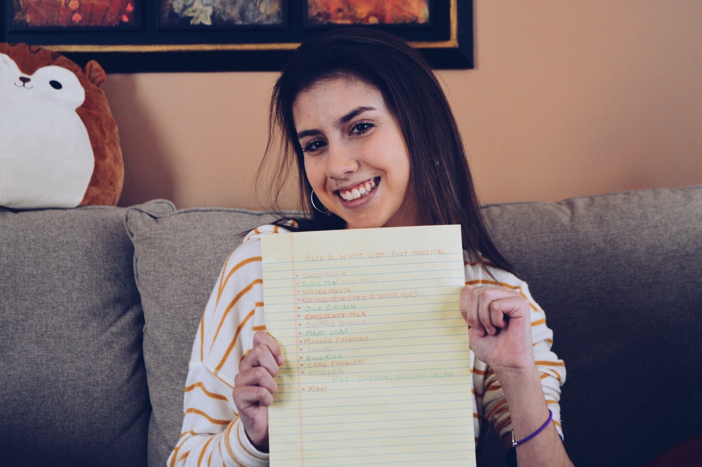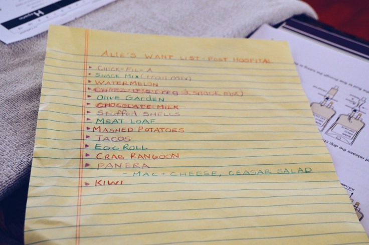 From there, Santin set out to make a “Food List,” which included all the foods she had been unable to eat since the summer. “All I could think of when I first saw it was how much it looked like a little kid’s Christmas List,” said Santin’s father, Peter. “She was so excited to eat all these foods that others don’t even think twice about.”