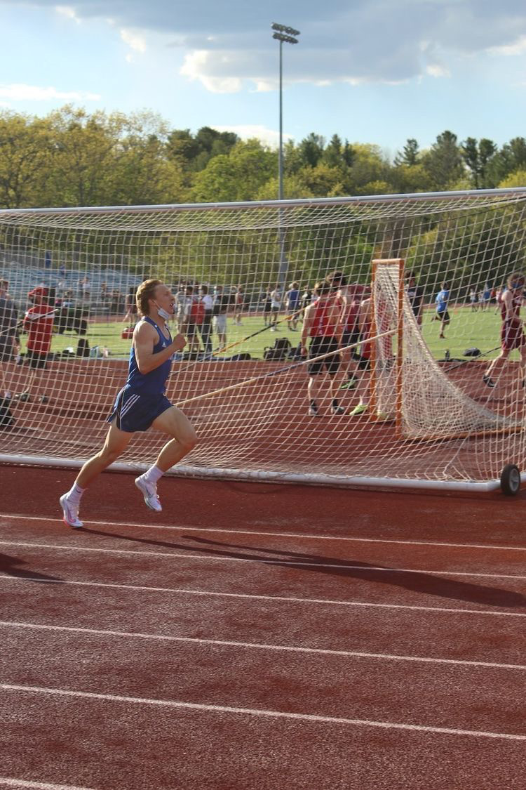The men’s 800 meter race had an unusual beginning, with three false starts. The first of the false starts was a runner leaving the starting line early. The next false start was from the pole in the pole vault event that fell into the race and knocked down multiple spectators including Keane Swiesz (‘23). The third false start came from a start gun malfunction. University of Rhode Island running commit Owen Fleisher (‘21), had a strong start to the race creating separation between him and the Concord runner, Brayden Kearns, who will be running for the University of New Hampshire next year. Kearns pulled the lead in the final stretch of the race in a neck to neck finish. Fleischer came in second place, finishing 0.16 seconds behind Kearns. Fleischer’s time for the 800 meter put him 2nd in the state for this year, and 1st for DII runners in the state.