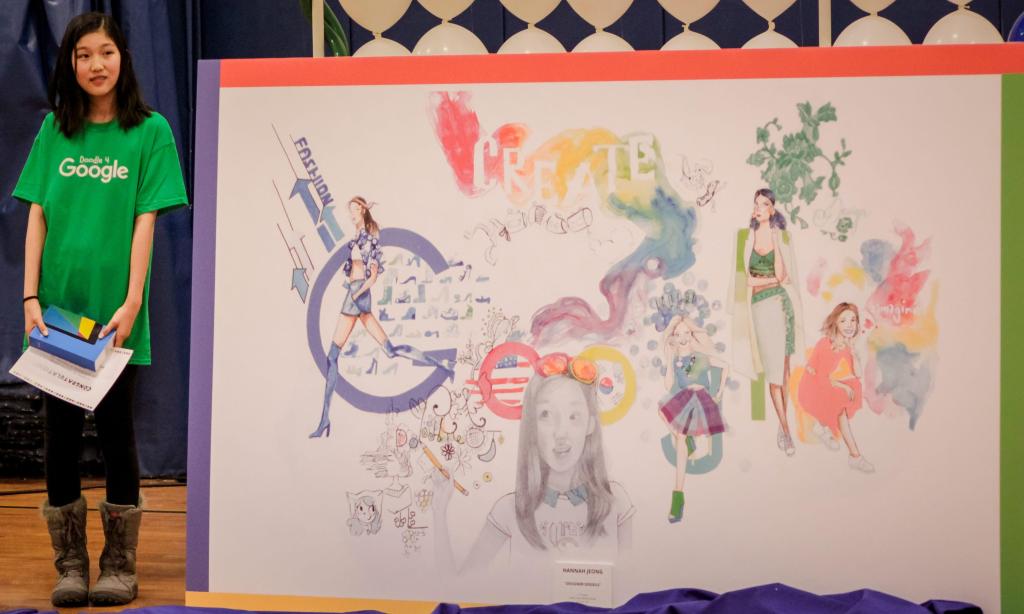 Jeong first heard about Doodle 4 Google from her aunt, who suggested she and her sister submit. Doodle 4 Google is an annual contest where artists from elementary to high school submit their own design for the Google logo, with the chance to have it displayed on Google.com. The 2016 theme was ‘what makes me…me’, and allowed artists to work with any mediums they chose.