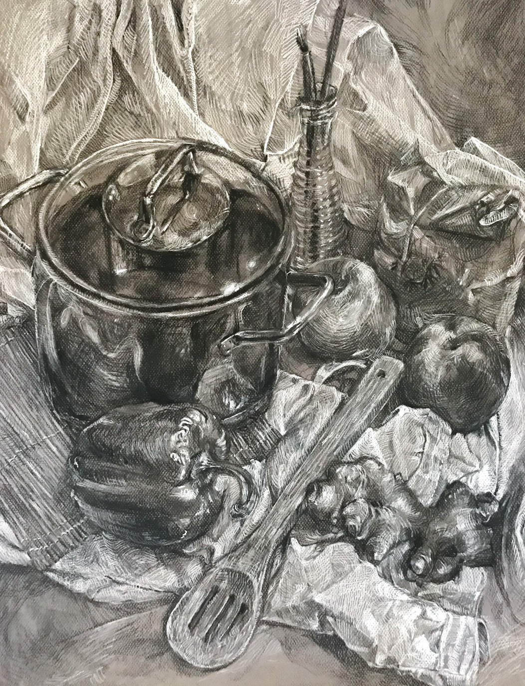 “Hannah was in my drawing and painting 1 class. It was her sophomore year, and she was one of the youngest students I had in that class. She didn’t seem the youngest, only her age made her the youngest, but her work was already pretty sophisticated at that point,” Lawrence recalled. Jeong and Lawrence have been working together for the majority of Jeong’s high school years, especially over the last few months as Jeong begins to put together her portfolios.