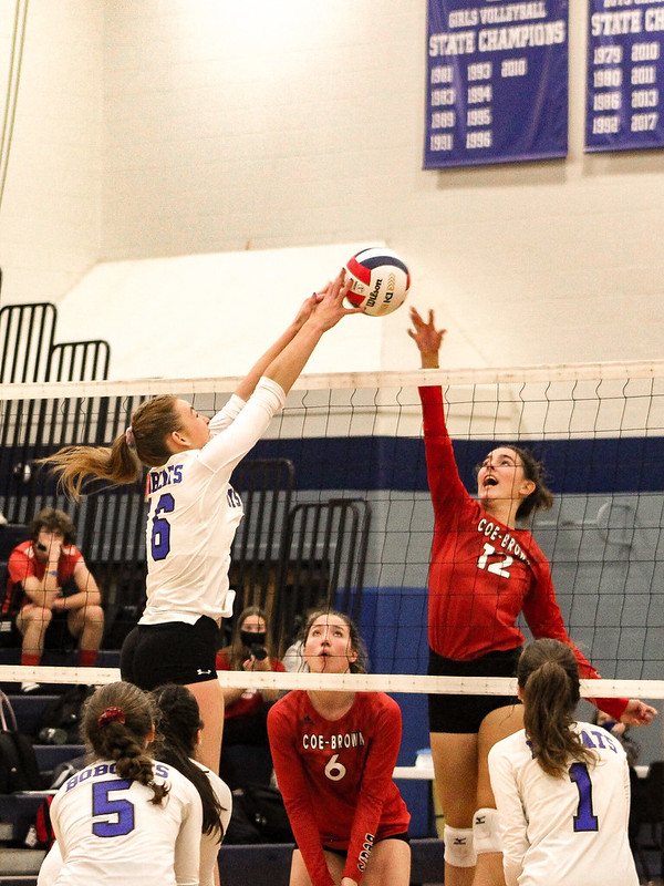 Tensions were high as the Oyster River girls volleyball team took on their rival, Coe-Brown at home with fans from both schools coming out to show their support.
