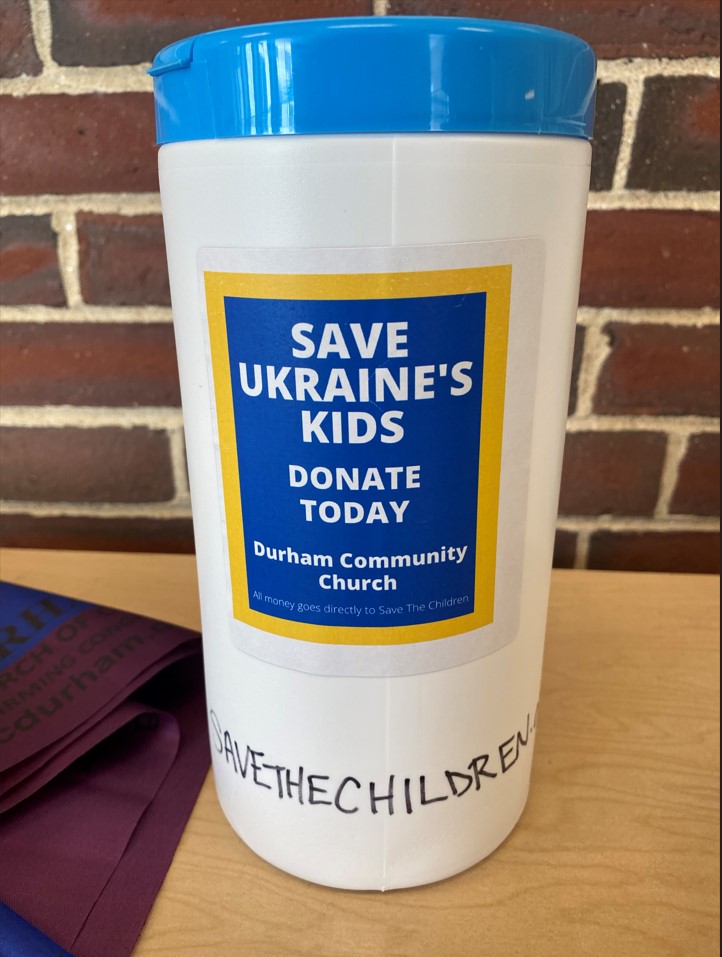 Instead of collecting resources, students collected money by putting jars with the writing “Save Ukraine’s Kids” around the community in spots like Durham Community Church, Echo Thrift Store, Oyster River Middle School, and The Juicery. The original goal for the students was to raise at least $1,000 from collecting in the jars. As of May 16th, students are pleased to be reaching their fundraising goals, already raising over $850.29 after about a month of distributing the cans. The Durham Community Church is also willing to match the donation giving them about $1,700 towards helping Ukrainian children. The students will finish up fundraising on May 16th, but within that time hope to make as much as they can to make as much of an impact as possible for Ukrainian children.