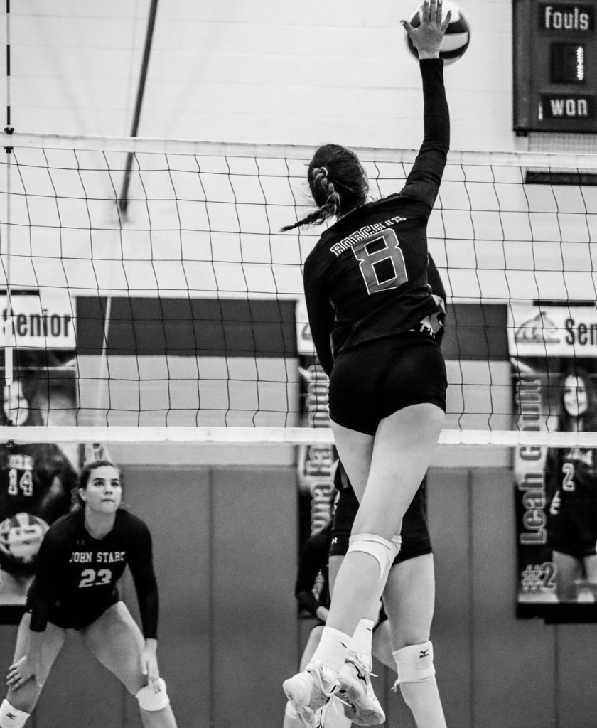 #8 Emma Hampton (‘23) spiking the ball