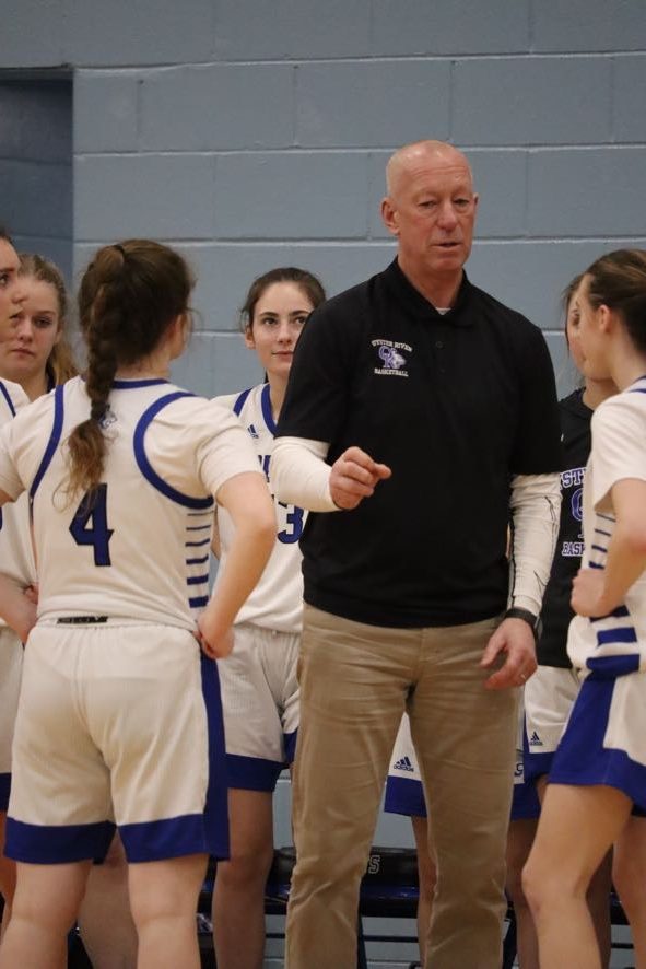 On the wall just outside of the gym at Oyster River High School (ORHS) is a board labeled ‘1000 Point Club.’ Listed second on that board, commemorating the 18 Oyster River basketball players who achieved 1000 points in their high school careers here, is Randy Kinzly. An Oyster River alum and former coach, a UNH graduate, and a Nike salesman for nearly 40 years, Kinzly has returned to the ORHS hardwood to coach the girls’ varsity basketball team.