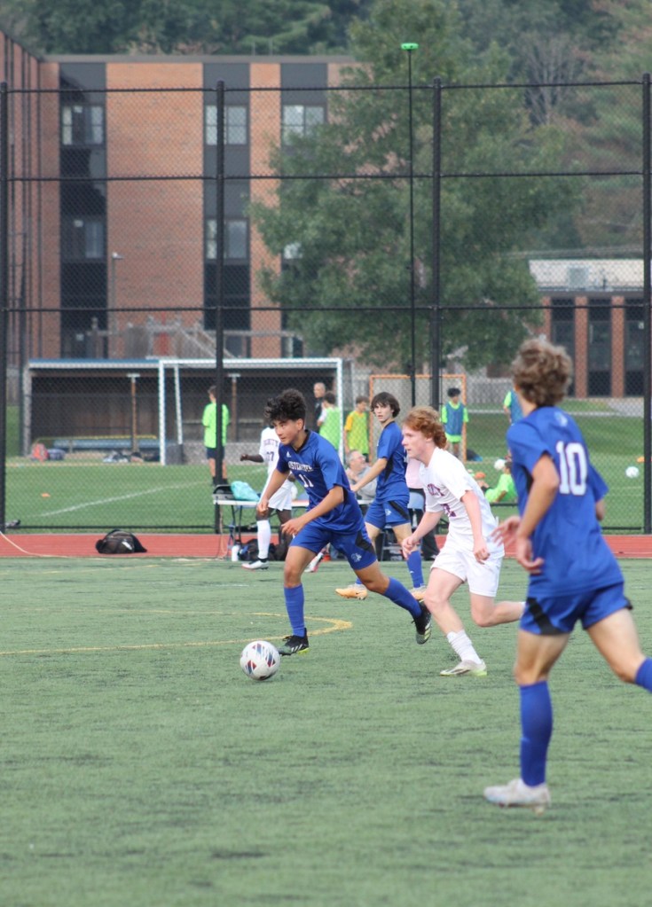 The game started off with a bang, as Wilson Kim (‘25) sneaked a header past the goalkeeper only nine minutes into the first half. Camden Tucker (‘24) assisted Kim’s third goal of the season on a high arching corner kick. When asked what he thought the offense did well during the game, Kim said, “I thought we possessed the ball really well, we probably had about 80% possession during the game, which leads to a good offensive game.”