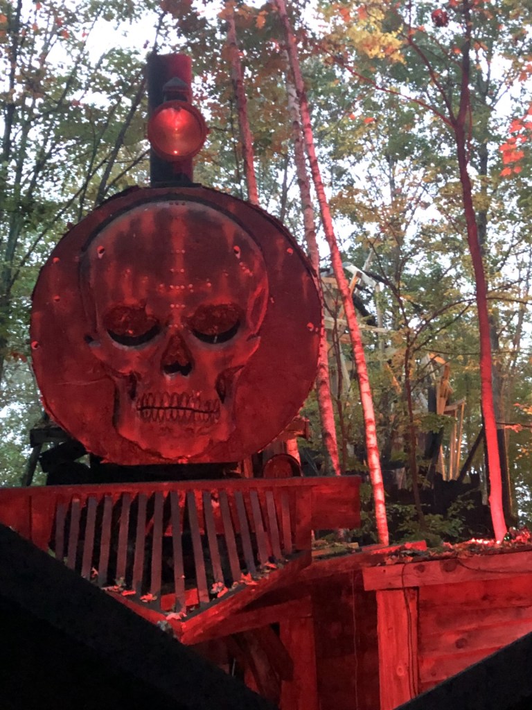 Another scare-actor, Matthew Delage, shares his experience creating his costume and character. Delage began working at Haunted Overload in 2021 as well. When Delage was creating his character, he was inspired by the haunted train set in Haunted Overload and decided to create a character that resembled an old train conductor. “That setting of the train station… I immediately thought of an old… very scary old guy, with overalls. Of course, I aged the costume… I wanted it to be authentic. It smells like oil, so all the senses are involved.” Delage’s aim was to make a character that had not been thought of for Haunted Overload before and is one of the only scare-actors that occupies the train area of the haunt.