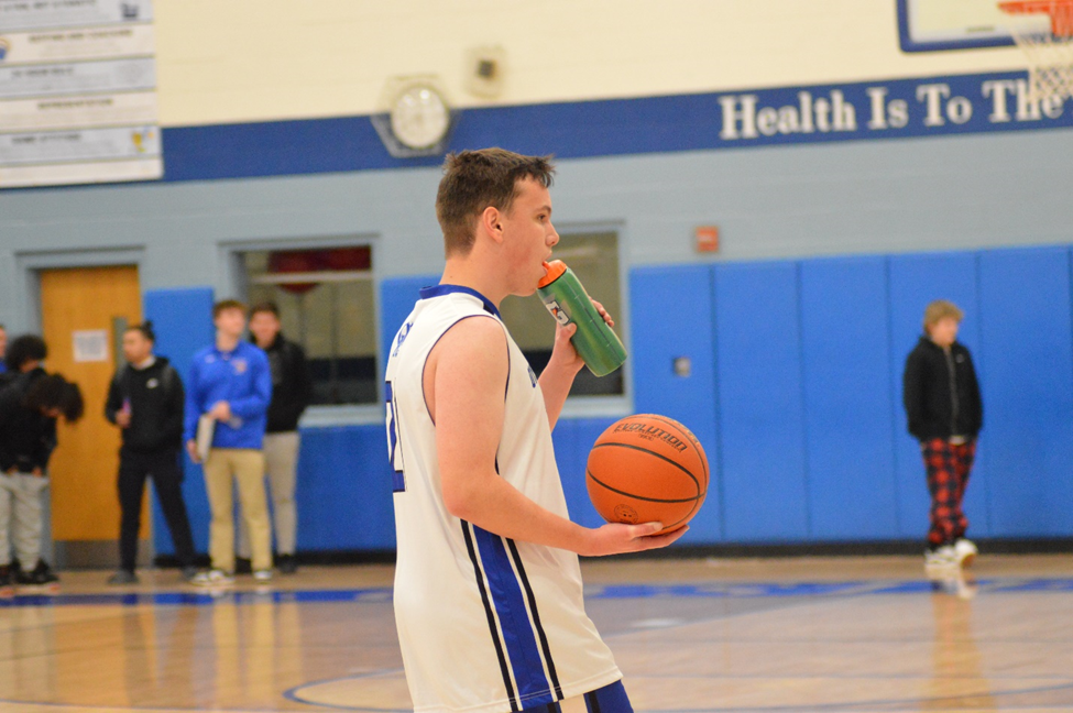 Jacob Baver coaches the team, giving encouragement during stretches before the game. “I know a lot of the students already from unified volleyball, and I have great relationships with students in the building, but this is the first time I’m entering the basketball coaching scene,” said Baver. While the game may be new to Baver, the energy of the team isn’t and he is very hopeful for a great season, which starts with the positive attitude of every player.