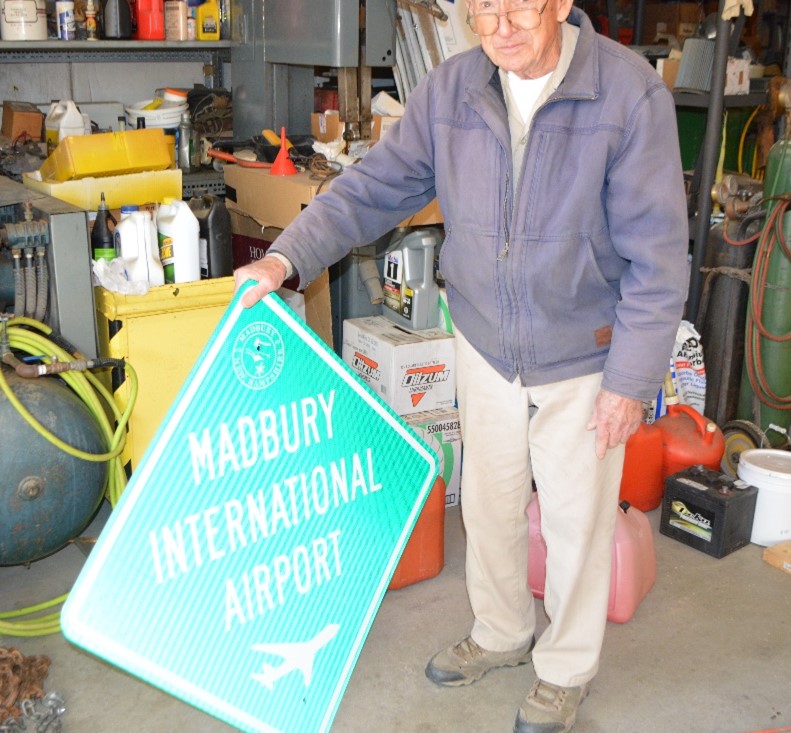 Riding home on Bus 2 as a middle school student, everyone always knew which way the wind was blowing – the orange and white windsock in the corner of the field, a clear gauge. Kids on the bus would press their noses to the window to see if the horse, fittingly named Auto, had stepped out of the barn. Little did they know the bus was driving by Madbury International Airport, established by Joseph Moriarty, who you see to the left. Joeseph Moriarty is a Madbury native and legend and has lived in Madbury for 62 years. Moriarty grew up on a turkey farm always tinkering with different machines, least favorably the manure machine. Through this, he began to develop his engineering skills. Sonn to build planes, cars, and everything in between.