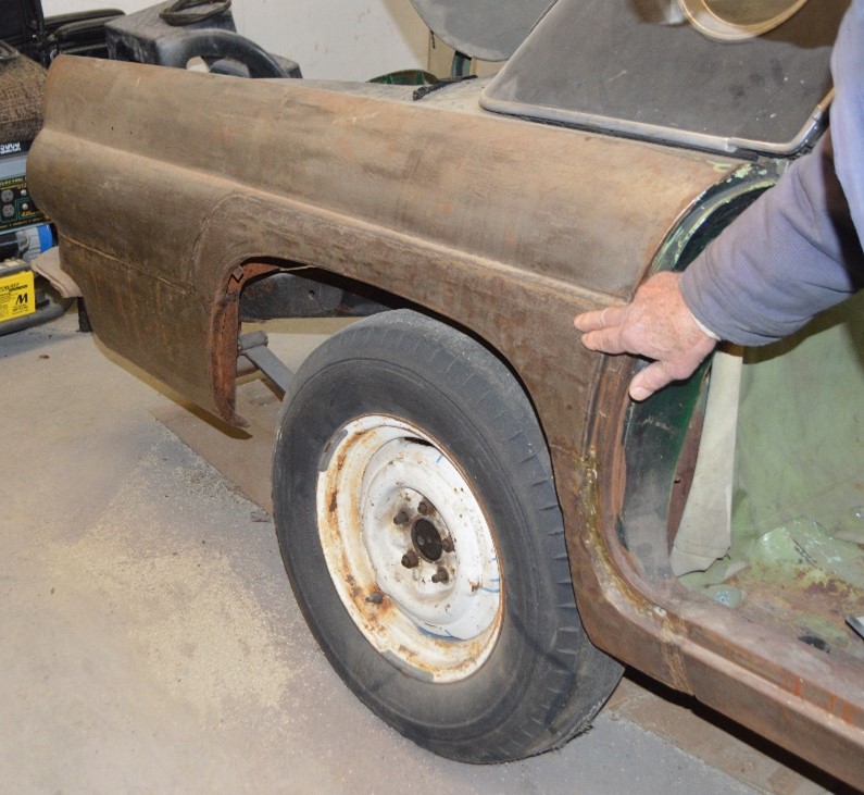 This is the 1956 Ford Thunderbird, an iconic car and one that Moriarty had been building for his mother in 1962, a car he is still working on now. It had fallen on the back burner as he began fixing up other cars saying, “I bought a parts car and was leaning against the bench with a beer and a bag of chips looking at the Thunderbird. It dawned on me; you’re fixing the wrong car, you dummy. I fixed the parts car and sold it making a nice profit. In time someone told me about another car, and I ended up fixing up about seven of them. This one never got finished.”