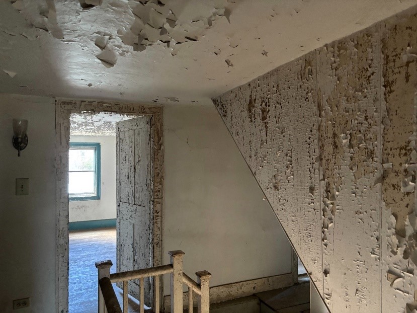 Entering the farmhouse, we turned corners half expecting an unwanted visitor to appear. Carefully we navigated dim-lit, dilapidated rooms. The ceiling had peeled off onto the ground and covered nearly every inch of velvet carpet.