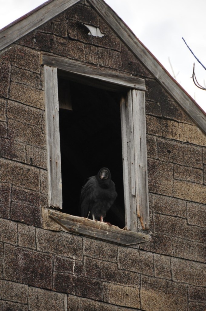 Up in the window, above the crest of the old silo, roosted a vulture. Everyone gazed in awe, mouths agape, as none of us had ever been this close to such a huge bird before. Even more surprising was the second vulture, nestled in between the branches of the nearby tree. It appeared that this property might still be in use after all.