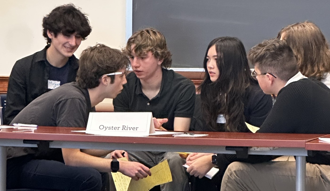 On January 25th, the College hosted the 2025 National High School Ethics Bowl (NHSEB) regional competition. The Oyster River High School (ORHS) Ethics Bowl team [Mason Gower (’27), Colin Weingardt (’27), Orion Smith (’27), Maren O’Keefe (’27), Morgan Kim (’27), myself, and our coach, Eden Suoth, ORHS philosophy teacher] joined the likes of Manchester West, Bishop Brady, and Franklin Academy.