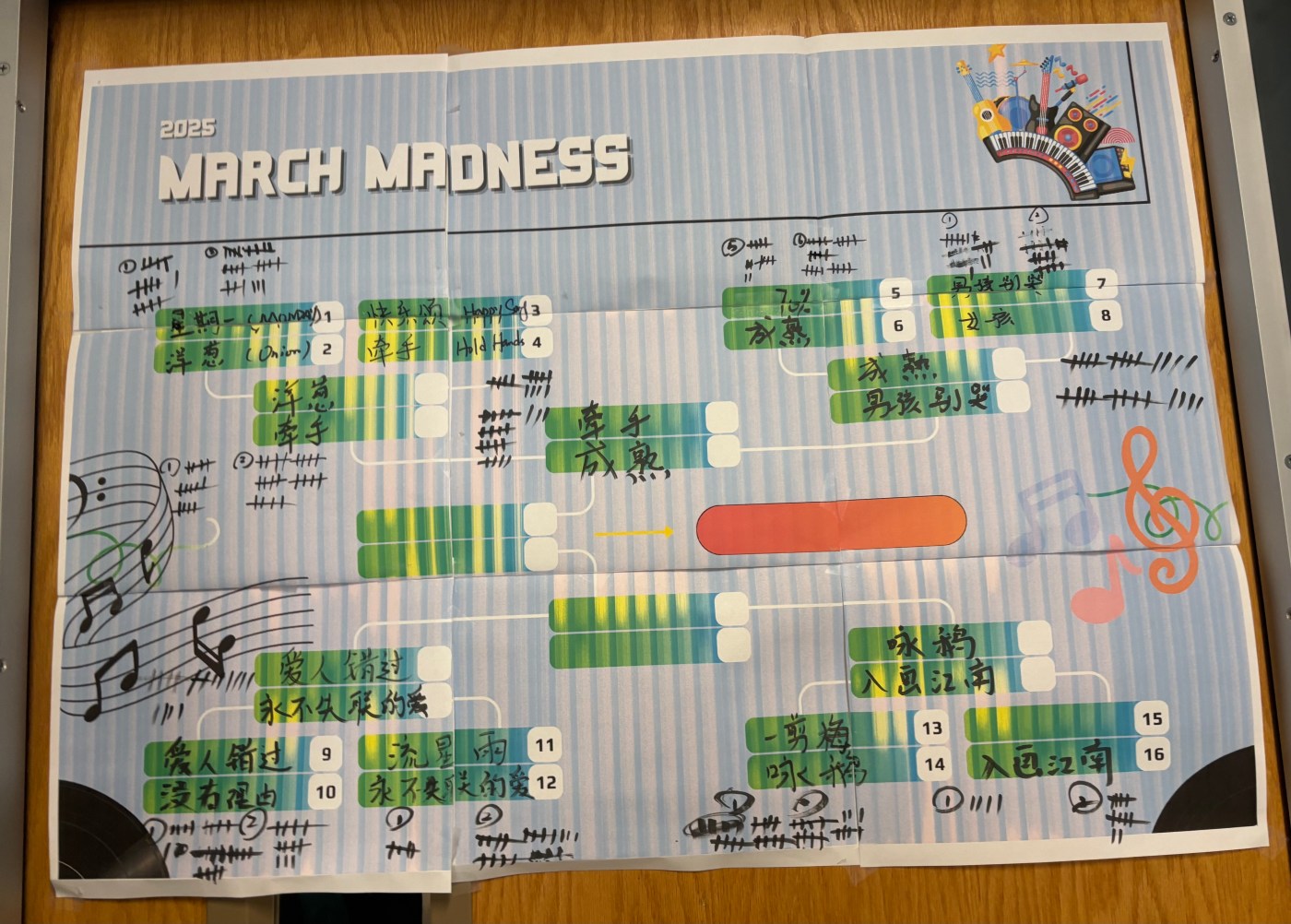 Each year, the Oyster River High School (ORHS) world language teachers spark the classes’ excitement when they run the French, Spanish, and Mandarin music versions of March Madness: Manie Musicale, Locura de Marzo, or simply March Madness in the Mandarin classroom. This event enhances the learning of these languages and fosters a more engaging classroom environment, increasing participation. The cultural aspects are also prevalent: students complete activities about the artists and the various countries they are from.