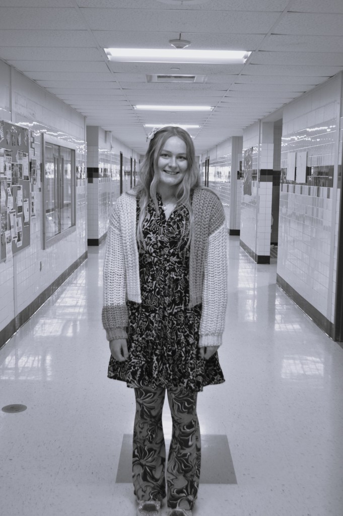 Effortlessly cool is pretty hard to pull off, unless you’re Larkynn Clapp (‘29). Clapp’s outfits reflect herself perfectly, quietly confident. The freshman fashionista likes to wear fun pieces like statement jewelry and fun graphics to elevate her style, while still keeping the modest look overall. Clapp gives credit to Pinterest and Instagram for style inspo, and says she uses social media as a way to discover and create. She explained, “Fashion to me is dressing in a way that best represents myself.” Her outfits aren’t meant to turn heads, but they do in the best way.