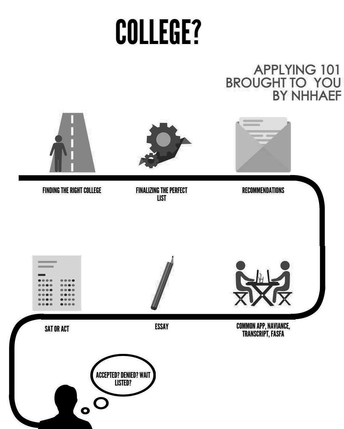The first topic delved into was the college search process. “What should you be looking for out of a college?” NHHEAF suggested that you need to be able to see yourself thriving there. “Colleges are just as much of a business as they are a school,” says Christian Burt (‘16). If you’re a student that took a trip to a college during the summer you should try to stop by for a tour this fall when there are actually students roaming the campus. The campus vibe is definitely different when you see how big or how small the school is.